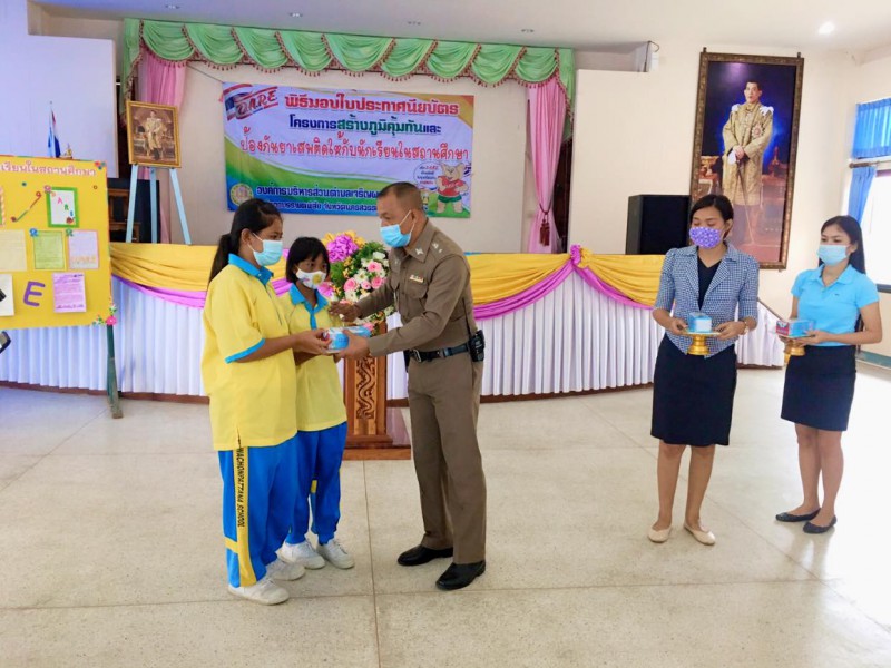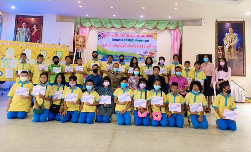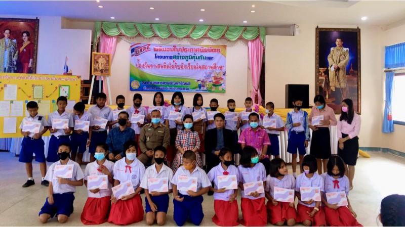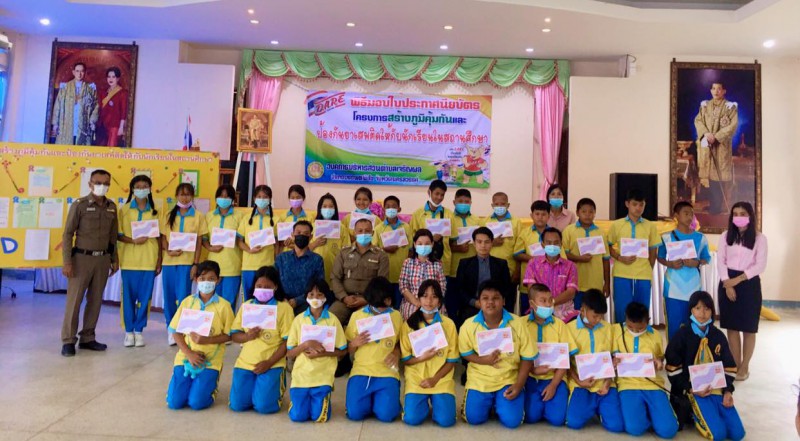 พิธีมอบประกาศนียบัตร โครงการสร้างภูมิคุ้มกันและป้องกันยาเสพติดให้กับนักเรียนในสถานศึกษา