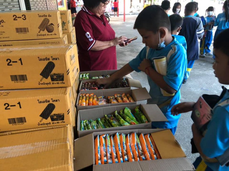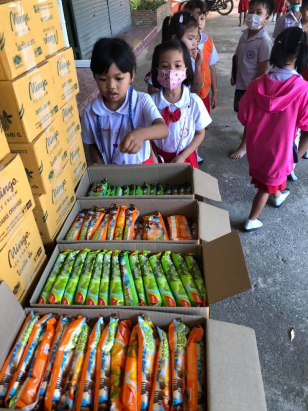 แจกไอติมนักเรียนทุกคน ชดเชยวันเด็กค่ะ