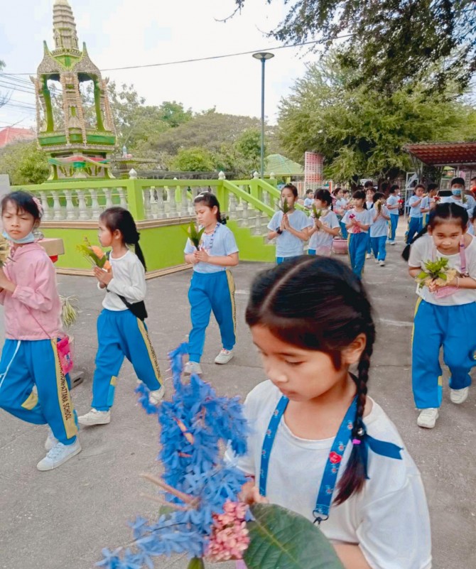 วันที่23 กุมภาพันธ์ 2567 เจ้าอาวาสวัดสองพี่น้อง อำเภอบรรพตพิสัย นำโดยผู้อำนวยการโรงเรียนนางสาวธิดารัตน์ อ่องยิ้ม คณะครู และเด็กนักเรียนทุกระดับชั้น ร่วมเวียนเทียน ฟังธรรม เนื่องในวันสำคัญทางพุทธศาสนา วันมาฆบูชา ประจำปี 2567 เข้าร่วมเวียนเทียนวันมาฆบูชา เป็นวันสำคัญทางพระพุทธศาสนา เป็นวันคล้ายวันที่พระพุทธเจ้าทรงแสดงโอวาทปาติโมกข์ คือการประกาศหลักธรรม คำสั่งสอนของพระองค์ ต่อหน้าพระอรหันต์จำนวน 1,250 รูปมาประชุมกันโดยมิได้นัดหมาย ทางพระพุทธศาสนาด้วยการใช้วันสำคัญ ทางพระพุทธศาสนาเป็นสื่อกลางในการทำความดีร่วมกัน โดยมีกิจกรรมการทำบุญ ฟังธรรม รวมทั้งการเวียนเทียนร่วมกัน |