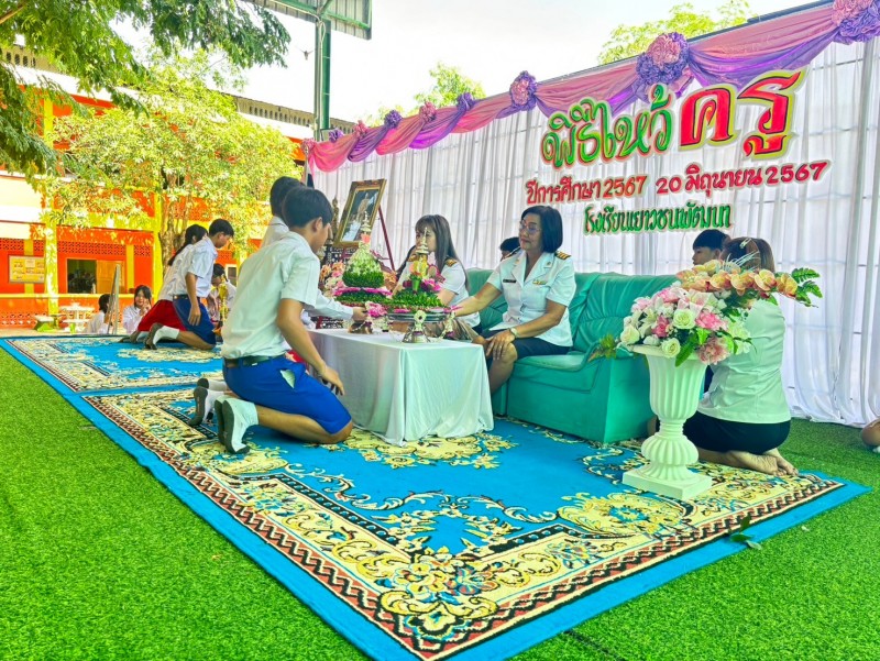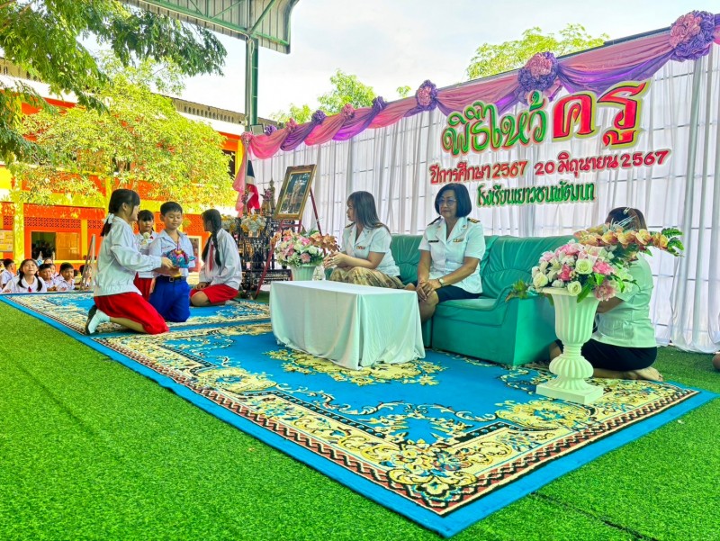 วันที่ ๒๐ มิถุนายน ๒๕๖๗ โรงเรียนเยาวชนพัฒนา ได้จัดกิจกรรมวันไหว้ครู น้อมวันทาบูชาครูประจำปีการศึกษา ๒๕๖๗ โดยมีนางสาวธิดารัตน์ อ่องยิ้ม ผู้อำนวยการโรงเรียนเยาวชนพัฒนาเป็นประธานพิธีไหว้ครู ภายในพิธีมีตัวแทนนักเรียนกล่าวนำบทไหว้ครูและนำพานขึ้นไหว้ครูเพื่อแสดงความเคารพและรำลึกถึงพระคุณของครู ซึ่งบรรยากาศเต็มไปด้วยความอบอุ่นของครูและนักเรียน |