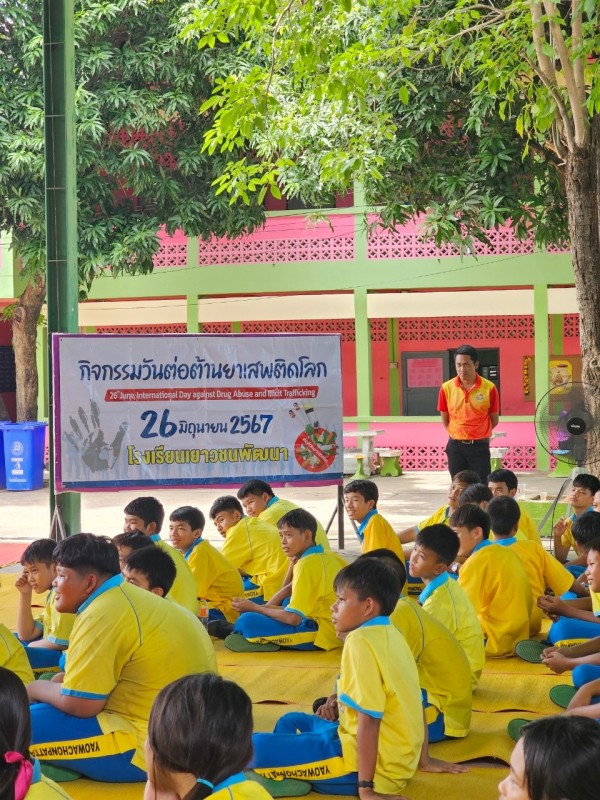 วันที่ 26 มิถุนายน 2567 ทางโรงเรียนเยาวชนพัฒนา ร่วมกับ สถานีตำรวจภูธรบรรพตพิสัย ได้จัดกิจกรรมวันต่อต้านยาเสพติดโลกอบรมให้ความรู้ เกี่ยวกับโทษของยาเสพติดและเพื่อปลูกฝังให้นักเรียน ใช้เวลาว่างให้เป็นประโยชน์ |