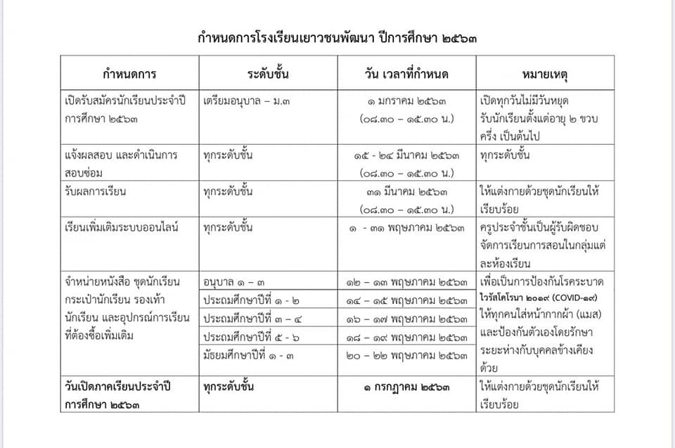 กำหนดการโรงเรียนเยาวชนพัฒนา ปี2563 ( การซื้อหนังสือ )