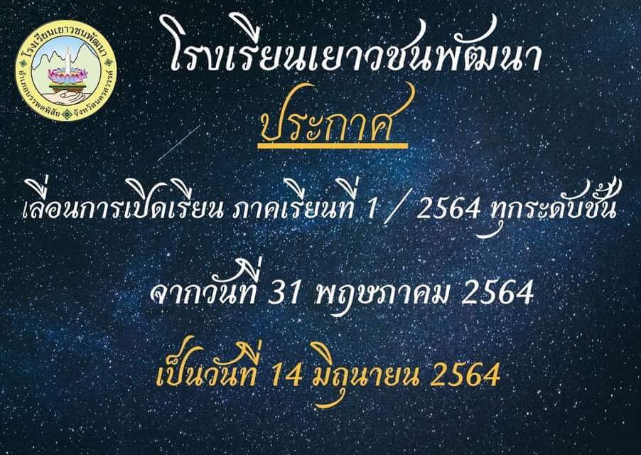 ประกาศ เลื่อนการเปิดภาคเรียน ภาคเรียนที่ 1/2564 เป็นวันที่ 14 มิถุนายน พ.ศ. 2564