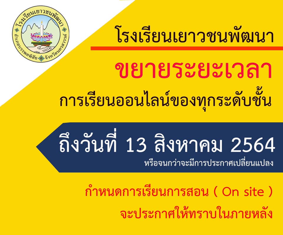 ประกาศ ขยายระยะเวลา การเรียนออนไลน์ทุกระดับชั้น