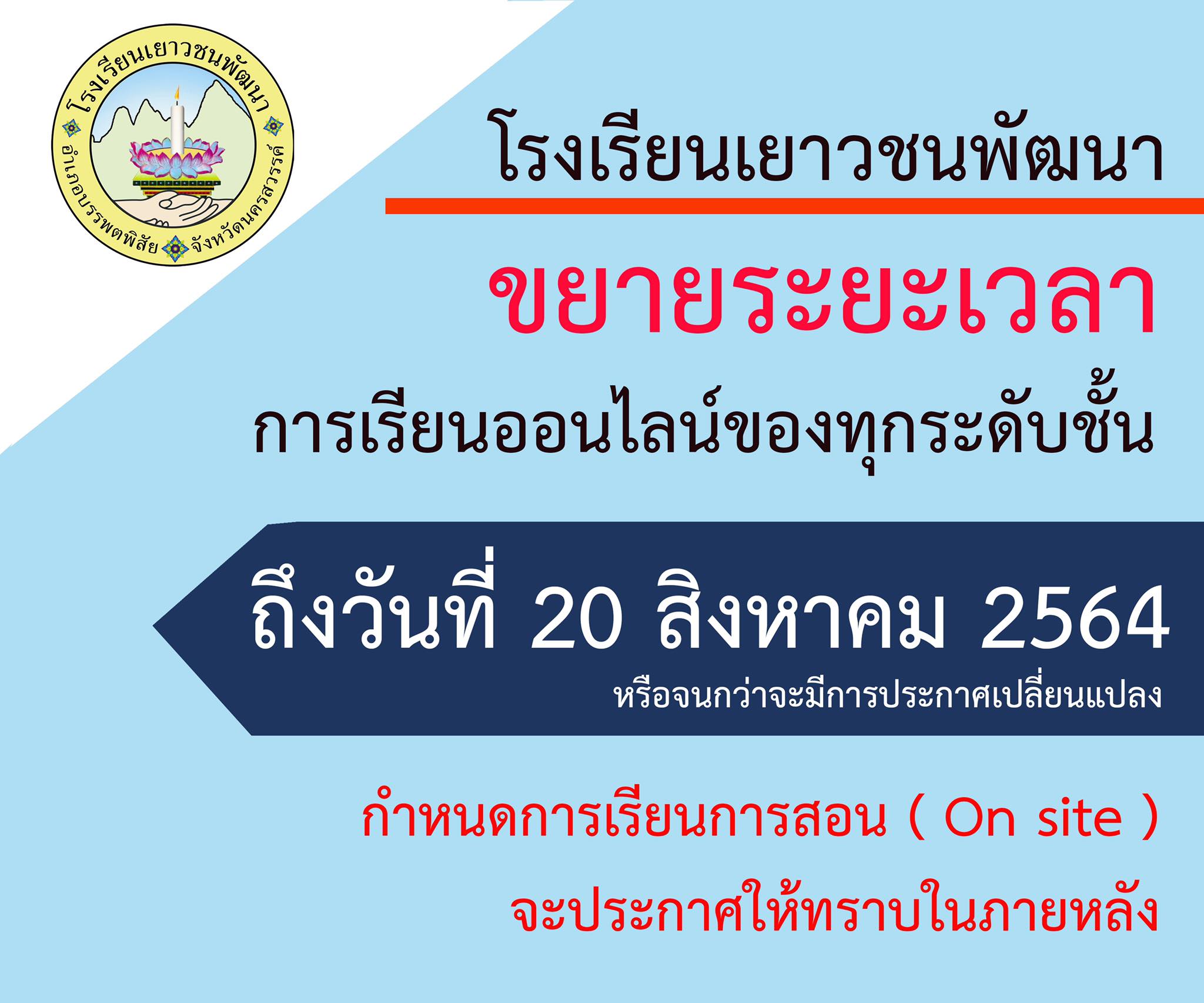 ประกาศจากทางโรงเรียนเยาวชนพัฒนา ขยายเวลาเรียนออนไลน์