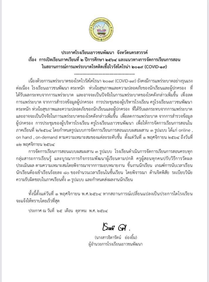 แจ้งประชาสัมพันธ์การเลื่อนเปิด ภาคเรียนที่ ๒ ปีการศึกษา ๒๕๖๔