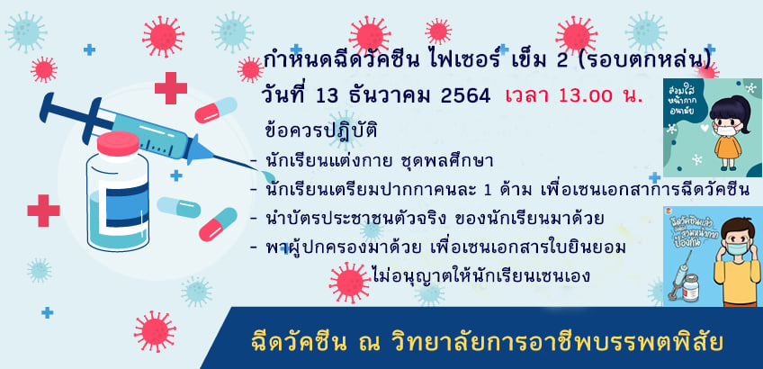 กำหนดการฉีดวัคซีนไฟซอร์ เข็ม 2 (รอบตกหล่น)